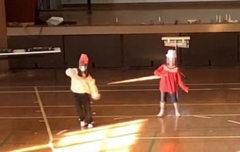 劇「浦島太郎」を発表しました。太郎や亀、乙姫の役やナレータの児童は、はっきりと大きな声でせりふを言ったり動きを工夫したりしました。竜宮城でパフォーマンスをする児童は、気持ちを合わせて太鼓の演奏や合奏をしたり、楽しくダンスやコントをしたりしました。みんなで心を込めて歌も歌いました。