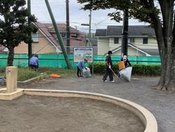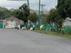 9月27日(土)に、能見台平原・千丈公園愛護会、能見台三丁目ロードサポート会、学校開放団体、LOVE能見小「花と緑のボランティア」、PTA有志の方々に御協力をいただき、校庭の草刈りを行いました。
