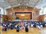 台風の影響で延期になっていた1年生の音楽朝会を行いました。