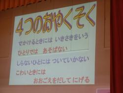 神奈川県庁のくらし安全交通課の方に来ていただき、防犯教室を行いました。不審者に出会ったらどうすればよいのかを、映像や実践を交えて教えていただきました。不審者に声をかけられたときを想定したロールプレイでは、教わった「4つの約束」を守り、しっかりと自分の身を守ることができました。