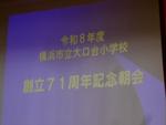 4月28日(火)、創立記念式を行いました。4年生が大口台小学校の歴史を発表しました。練習を繰り返し行った成果を発揮し、分かりやすい発表を行うことができました。また、「ようこそ先輩」では本校の卒業生を招き、当時と今の学校の変化について話をしてくれました。子ども達は興味をもって、食い入るように話しを聞いていました。