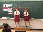 今年度の国際理解教室は、インドネシアについて学んでいます。2年生はインドネシアと日本の学校の違いについて紹介してもらいました。学校の始まりが、日本は8:20なのに対して、インドネシアは7:00ということにびっくり。小学校から制服があるようで、代表の2人が着させてもらっていました。
