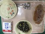 ごはん 牛乳 肉そぼろ 甘酢あえ 月見汁