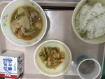 麦ごはん 牛乳 チキンライスの具 野菜スープ りんご