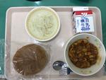 はいがパン 牛乳 チリコンカーン じゃがいものソテー