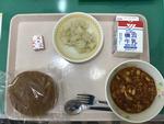 ごはん 牛乳 白身魚のチリソース ゆで野菜 ワンタン風スープ