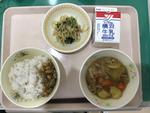 はいがごはん 和風カレー ごま酢あえ プルーンはっこう乳