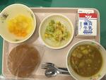 ごはん 牛乳 白身魚のチリソース ゆで野菜 ワンタン風スープ