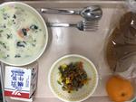 麦ごはん 牛乳 鶏ごぼうごはんの具 はまっこキャベツナ みそ汁