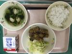 はいがごはん 牛乳 豚肉と野菜のしょうが炒め とうがんのすまし汁 納豆