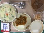 ごはん 牛乳 かつおのごまみそあえ 即席漬 すまし汁
