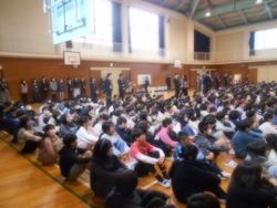 この後に離任や退任する職員とのお別れがありました。11人もの職員の話がありましたが、大岡っ子らしく、よく話を聞いて、反応していました。大岡小に長く勤務していた職員も異動になるということで、6年生や中学生、保護者の方もたくさん来ていました。