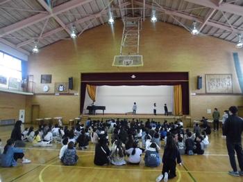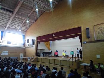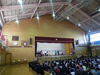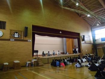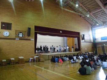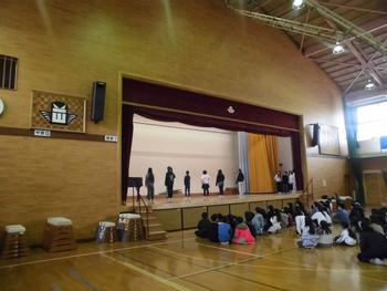 全校児童が体育館でレクや歌、ムービー発表をしました。