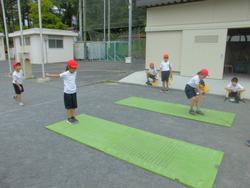 今週は運動委員会主催の「玉入れ」を朝学習の時間に行います。今日は5・6年生の玉入れを行いました。玉を一つ持ち、玉をかごに入れたらラダーを通って帰ってきます。制限時間は1分ですがよい運動になりました。
