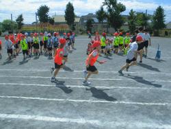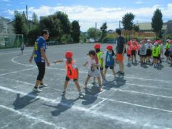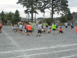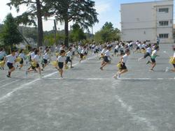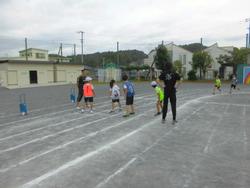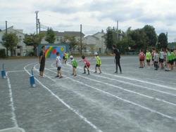 バトンパスがスムーズにいかない時もありますが、子どもたちは校庭1周を全力で駆け抜けています。低学年リレーの練習には6年生もサポートに入っています。