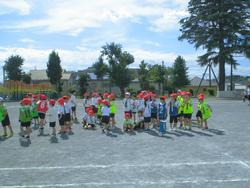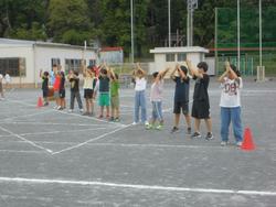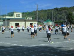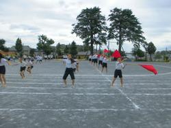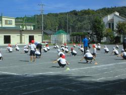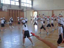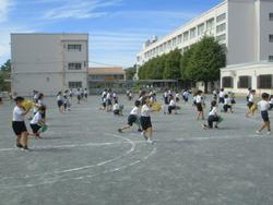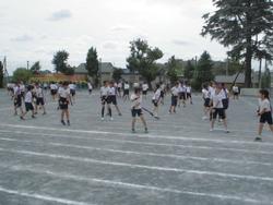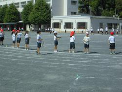 1年生は縄跳びを使った演技に取り組んでいます。縄跳びはもちろん時間内に隊形移動を終えることに挑戦しています。