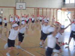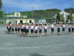 2年生はカラフルなポンポンを使った演技です。1週間前ですが、子どもたちは自信をもって練習に取り組んでいます。