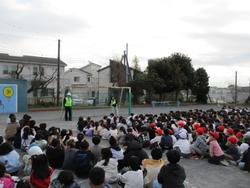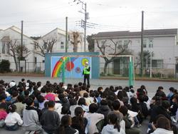 1月13日の朝会では、正月の文化風習についての副校長の話、作品展の表彰、今月の目標についての取組の発表、公園の正しい使い方についての話を行いました。体調不良の児童も少なく、みんなが体育館に集って行うことができました。