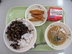 4月28日(火)麦ごはん、牛乳、ひじきごはんの具、きびなごフライ、みそ汁