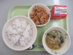 4月14日(火)ごはん、牛乳、生揚げのそぼろ煮、磯香あえ