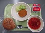 12月12日(金)丸パン、牛乳、コロッケ、ボイルドキャベツ、ボルシチ