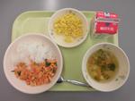 2月17日(火)ごはん、牛乳、ツナそぼろ、みそ汁、白玉ぜんざい
