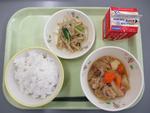 4月16日(木)ごはん、牛乳、肉じゃが、からしじょうゆあえ