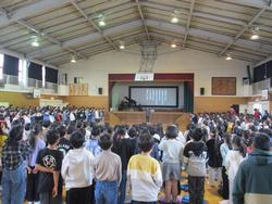 今日の音楽朝会では、「あすという日が」を歌いました。全校で一度歌った後にこの歌が東日本大震災をきっかけに生まれたことや、作った方の思いについて話を聞き、もう一度歌いました。歌詞を噛みしめながら歌い、美しい歌声が響き渡りました。しっとりと優しい空気に体育館が包まれました。