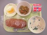 1月29日(木)ごはん、牛乳、とんかつ、ボイルドキャベツ、みそ汁
