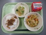 4月21日(火)ごはん、牛乳、親子煮、おひたし、だいずとじゃこの炒り煮
