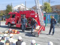 横浜市消防局岡津出張所の皆様に来ていただき、3年生に消防についての出前授業をしていただきました。消防士の装備や救急車での搬送の仕方、実際に放水の様子を見せていただきました。岡津出張所の皆様ありがとうございました。