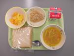 1月13日(火)食パン、牛乳、ツナペースト、ヌードルスープ、ミックスフルーツ