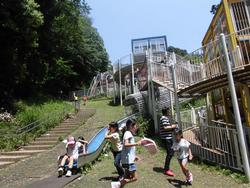 2年生の大池公園での様子です。到着してから、担任の先生達のお話を聞いてからお弁当を食べました。とても楽しみにしていたようで、お弁当箱を開くと、みんな歩いた疲れも吹き飛ぶほど笑顔に。その後は、虫を探したり草花を摘んだり、アスレチックで遊んだりと、暑さを吹き飛ばす勢いでした。とても楽しい遠足でしたね。