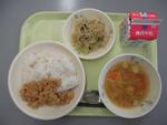 11月5日(水)麦ごはん、牛乳、肉そぼろ、ごまじょうゆあえ、のっぺい汁