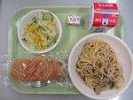 10月14日(火)ぶどうパン、牛乳、きのこスパゲティ、コーンサラダ、チーズ