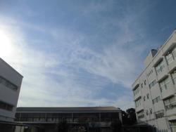 今日、午前と午後2度も5年生がずらーっと並んで上を見上げていました。何をしているのかなと思い、外に出て声をかけると、理科の学習で空の観察をしていました。雲の様子をじっと観察し、観察カードに記入していました。空をじっと見上げることなどなかなかないので、子どもたちはどことなく嬉しそうに見えました。