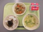 1月27日(火)麦ごはん、牛乳、炒り鶏、かきたま汁、昆布の佃煮