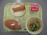 12月22日(月)ぶどうパン、牛乳、ツナと小松菜のスパゲティ、かぶのスープ煮、チーズ