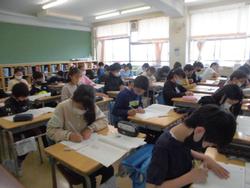 今日は、全国一斉に全国学力・学習状況調査が行われます。小学校は、6年生が対象となっています。国語と算数、そして生活意識調査を実施しています。普段のテストとは違い、かなりの分量の文章を読み込み答える問題となっていました。皆、真剣に問題と向き合い、解答用紙に記入していました。