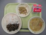 11月4日(火)麦ごはん、牛乳、ひじきご飯の具、魚のから揚げ、呉汁