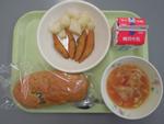 2月24日(火)ぶどうパン、牛乳、いりこフライ、こふきいも、ミネストローネ