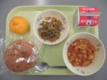12月5日(金)はいがパン、牛乳、カレービーンズシチュー、野菜ソテー、みかん