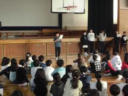 今日の朝会では、児童運営委員会の代表児童からの発表と読書感想画コンクールの表彰を行いました。また、副校長と児童指導担当より落とし物や冬の服装についての話を行いました。