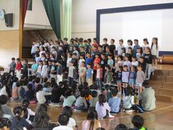 令和7年度の修了式と離退任式を行いました。修了式では、2・5年生の代表児童が1年間の振り返りを堂々と発表しました。また、離退任式では、寂しさがありながらも、笑顔いっぱいの素敵な思い出を作ることができました。