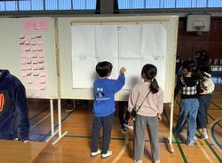 12月18日 延期になっていた4年生のクラスのOKフェスタでは、誰もが笑顔になれるゆるスポーツ「フラワーピック」を開催しました。保護者の皆様、ペア学年や同学年の他のクラス、昼休みには高学年の子どもたちも来てくれました。 ゆるスポーツ体験の運営だけではなく、このテーマの経緯の説明や参加する方々へのアンケートを取ることにも意欲をもって取り組めました。OKフェスタ後に、参加者に書いてもらったアンケートをとても興味深く読んでいる姿が印象的でした。 12月17・18日 2年生の図工「おもいでをかたちに」の学習。粘土で、楽しかったことや頑張ったことなどを形に表す題材です。 細かなところまで思いをこめて表している様子から、とても楽しかったり一生懸命頑張ったりした思い出だったことが伝わってきました。 いくつかお話を聞いてみると・・・映画館、ジェットコースター、とんぼとり、家族でお寿司、八景島シーパラダイス、アンパンマンミュージアム、ドッジボール、運動会・・・本当に様々な思い出の場面があり、見ていても楽しかったです。 12月16日 6年生はバスで社会科見学へ行きました。学校でまず出発式。スローガンや約束等を確認した後、見送りに出ている教職員に「行ってきまーす!」と元気に挨拶をして出発です。 国会議事堂では中を見学することができました。地元の議員の方が挨拶にいらっしゃってお話をしてくださいました。議事堂の中を静粛にしながらしっかり見学しました。 それから皇居へ。ウォークラリーをしながらグループで散策し、ゆっくり過ごしました。 最後は、科学技術館。お昼ご飯も館内で食べました。科学技術館は各階にたくさんの展示や体験コーナーがあり、一日ではとても回り切れないくらい充実した内容でした。 解散式は帰りのバスの中で行い、バスを降車した折本橋での解散しました。国会議事堂や二重橋前でクラス写真も撮り、思い出に残すことができました。 12月15日 1年生が近隣の保育園との交流を行いました。その中での質問タイムでは・・・ 「学校は楽しい?」→「楽しいです。特に休み時間のジャングルジムが楽しいです。」 「学校まではどうやって行くの?」→「友達と歩いて行っています。」 「宿題はどうやってやるの?」→「紙に鉛筆で、漢字の練習や計算の練習をします。時々タブレットの宿題もあります。」 それから、秋遊びタイム! がっき、つり、パチンコ、はっぱスタンプ、かざり、こま、おままごと、けん玉、どんぐりでんわ いろいろなブースで保育園生と1年生が一緒に楽しむ姿が見られました。やさしくやり方を教えたり、自分のブースの遊びにそっと誘ったりする1年生も。 帰りには、名前を呼びながら別れの挨拶を交わす姿がとてもかわいかったです。 12月12日 2校時~4校時に本校学校薬剤師の先生をお招きし、各教室で薬物乱用防止教室を行いました。 「薬物の心身への影響や依存性について知り、周りの人からの誘いや断りかたについて考える」をめあてに大麻やオーバードーズ等、最近のニュースにも触れながら、学びました。子どもからの感想には 「今日の授業みたいに小学生の時から学んだらいいと思う。気持ちが弱っているときに起こりやすいから弱らないようにする」「薬物に対する正しい知識を身に付ける」「とても勉強になった」「はっきり断ることが大切、ストレスや不満をためないで、たまったら親に相談する」など、様々な感想がありました。 12月12日 1年生の外国語活動(YICA)の時間です。 絵本 The Very Hungry Caterpillar(『はらぺこあおむし』)の中で出てきたいろいろな食べ物を知って、自分の好きなものを伝え合う学習です。 AETやみんなでたずねる“ What food do you like? ” の質問に、自分の好きなものを “ I like chocolate cake. ” など答えていました。子どもたちは、友達が話す好きな食べ物について注目してよく聞いていました。 これから友達同士でも伝え合って、好きなものを互いにたくさん知り合えるといいです。 12月11日 今週、6年生は家庭科「こんだてをくふうして」で、1食分のおかずを作る調理実習をしました。 栄養バランスも考え、一人ひとりが違う献立を決めて作っています。前回よりも、本当に手際よく慣れた手つきで、作り方などを見なくてもどんどん進める姿が頼もしかったです。おいしそうなおかずが次々と出来上がっていて感心しました。ボランティアの保護者の方にも見守っていただきながら、無事終了することができました。ありがとうございました。 「ぼく、もう料理、慣れてきたかも!」という嬉しい声も。冬休みにもぜひ、家で実践できるといいなあと願っています。 12月9日 5校時 都筑区福祉保健センター子ども家庭支援課 助産師さんをお招きし、いのちの授業を行いました。 めあて ・2月に行われるおうちの方へのありがとうの会や卒業式など節目の前に、様々な人からの支えや関わりの中で心身共に成長したことを振り返る。 ・自分たちの体が第2次性徴に