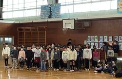 交流会は、早渕中の皆さんが準備をたくさんしてくれて、生徒の皆さんがとてもしっかりと運営していたので、1時間の会がとても充実していました。内容は、早渕中クイズ、バースデーライン、大なわとび。どのレクリエーションも、早渕中と勝田小と折本小の子どもたちが関わり合って楽しく活動できました。