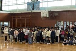 2月24日 中休みに長縄集会がありました。今日は3年生と5年生。ペア学年のクラスが跳んでいる時には、跳んだ回数を大きな声で数えながら、「いいよ!」「上手!」などの温かい声援も聞こえました。目指した回数に達しなかったクラスも、今日で終わりでなく、引き続き、休み時間などにも取り組んで目標を達成してほしいです。