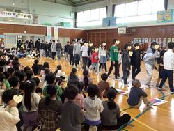 交流会は、早渕中の皆さんが準備をたくさんしてくれて、生徒の皆さんがとてもしっかりと運営していたので、1時間の会がとても充実していました。内容は、早渕中クイズ、バースデーライン、大なわとび。どのレクリエーションも、早渕中と勝田小と折本小の子どもたちが関わり合って楽しく活動できました。