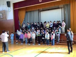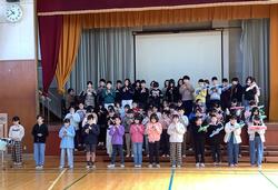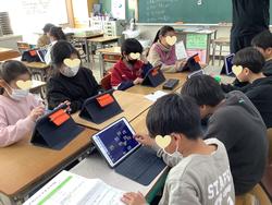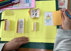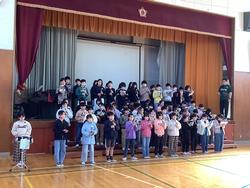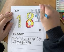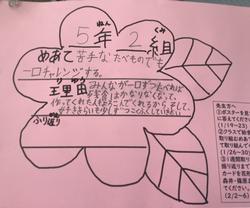 1月30日 もう1月も終わりです。3年生がカウントダウンのカードに取り組んでいました。修了式の3月25日まで、あと何日このクラスで一緒に学べるか、1日ずつ担当を決めて書くカードです。残り日数の数字だけでなく、クラスみんなで頑張るめあてを書く欄もあります。一日一日を大切に過ごして、素敵な思い出をたくさんつくってほしいです。 1月29日 2年生が、図工「まどをあけたら」の学習に取り組んでいました。カッターナイフで開けた窓の中に、窓から出てきてほしいものを考え、思い思いの絵を描いていました。 窓を開くと、動物や湖で泳ぐ鳥、好きなキャラクター、フルーツ、お菓子、家族など・・・かわいいもの、おいしそうなもの、おもしろいもの、びっくりするもの、子どもたちそれぞれの世界が見えました。 これから立体的に作品を仕上げていくので、みんなの思いがさらに形になるのが楽しみです。 安全面にも気を付けるよう十分に指導して・・・ 1月28日 寒い体育館で、2年生が寒さに負けず、元気に「とびばこあそび」をしていました。 たくさんの跳び箱を用意した場で、何回も何回も自分の目指した動きの練習をしていました。手を着いてまたぎ乗り・下り、手を着いて跳び乗り・下り、開脚跳びと様々です。跳び箱の奥にしっかり手を着いて跳ぼう、着地をきちっとしてみようなど自分のめあてをもち、たくさんの子どもたちが開脚跳びにチャレンジしていました。「跳び箱、跳べるようになったよ!」ときらきらした目で教えに来てくれる子も。 友達の跳んでいるところを見て、よい動きを見付けながら頑張っていました。自分の番が終わったら、ちゃんと手を挙げて次の人へスタートしていいよの合図。安全に楽しく運動している姿がすばらしかったです。 1月27日 今週は給食週間となっています。今年度のテーマは「感謝」キャッチコピーを「咲かせよう 感謝の花」として、先週から全校で様々な取組を行っています。 給食に関わる人についてのポスター(給食委員の子どもたちが調理員さんや業者の人、農家の人などへインタビューしてまとめたもの)を見て、そのクイズに答える、その内容を受けて、各クラスで感謝が伝わる取組を考え、めあてを決めて取り組む などです。 給食に関わる人の思いについて、ポスターで読んだりクイズに答えたりした子どもたちは、それぞれいろいろな感想をもったようです。 「嫌いなものも挑戦していっぱい食べられるようにしたい」「給食を作るためにたくさんの人が協力してくれて、これからはなるべく給食を残さず食べられるようにしたい」「給食のためにいろいろと大変なことをしてくれていることがうれしいなと思いました」「いつもよりたくさん給食を食べられるようになって、食べ物のごみを減らしていきたい」 一人ひとりの子どもたちが、このような気持ちをもてたことをうれしく思います。給食週間の振り返りもしっかり行って、これからも感謝の思いをもちながらおいしく給食を食べてほしいです。 1月23日 4年生で総合的な学習の時間にオリジナルのカードゲームを作っているクラスがあります。 これまで、折本のまちの魅力を調べたり、実際に様々な場所にインタビューに行ったりしてきました。画用紙で手がきのカードを作り、テストプレイしたことをもとに、この日はカードの文章やイラストをタブレットで入力していました。 2月に印刷所にデータを入稿する予定です。今から完成が楽しみです。さらにこのカードゲームを通してたくさんの人のつながりが広がると嬉しいです。 1月26日 2月12日にある都筑区児童音楽会に出演する子どもたちの体育館練習が始まりました。中休みに各クラスから集まり、短い時間でしたが、自分の並び場所を把握してリコーダー演奏の曲を練習することができました。2時間目が体育だったクラスもあり、集まるのも大変だったと思いますが、音楽会に出演する自覚をしっかりもって頑張っていました。 1月23日 近隣保育園の年長の子どもたちと1年生が交流しました。はじめは、国語で学習した「たぬきの糸車」の読み聞かせ。保育園児のみんなに自分たちの席に座ってもらい、1年生は隣に座って音読しました。どこを読んでいるか分かるように指でなぞりながら音読している1年生もたくさんいました。 そのあとは校庭で鬼ごっこ。保育園児も1年生も力いっぱい走って楽しく交流していました。年長のみんなはもうすぐ1年生。小学校が楽しみになると嬉しいです。 1月23日 個別支援学級で、畑で育てた野菜を使って「みそうどん」を作りました。使った野菜は、かぶと白菜。大小ありますが、とても立派なかぶと白菜が採れたので、今日のみそうどんにもたっぷり入れました。 5・6年の子どもたちがまずは包丁を使い、かぶを切って下準備。初めて包丁を使う子どももいて少し不安そうでしたが、うまくできてほっと安心!それからみんなで白菜をちぎったり、だしや水を計量して入れたり・・・ みん