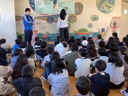 2月6日 1年生が近隣保育園の園児たちと交流しました。園児のみなさんからのリクエストにお応えして、体育館を見たり、屋上にあがったりしました。 屋上から見える景色に、1年生も一緒に大興奮。「○〇が見える!」「わたしのおうちもうっすら見えたあ。」 曇り空ではありましたが、遠くに富士山も。 「わあ!富士山が見える!」「ええ?どこどこ?」 園児のみんなが危なくないように、見る場所について優しく教えてあげる1年生の姿も。 保育園のみんなも1年生の子どもたちも満足そうに屋上をあとにしていました。 2月5日 折本タイムに4階ホールに集まっていた5年生。6年生進級まであと2か月。年明けからステップを踏みながら、学年目標「レインボーマウンテン」で目指す姿に向けて、ステップ①として取り組んでいることの振り返りと次のステップの取組について話し合っていました。 ステップ①は「声を出そう」 挨拶、授業中の発言、人との関わりの中で、など様々な意味合いがあります。 事前に、この2週間、どんなことを頑張れたのか、次はどんなことを意識して取り組みたいのか、個々が振り返った後に集まって意見を出し合っていました。 互いの成長を実感し、認め合いながら頑張ってほしいです。4月の6年生としての姿が今から楽しみです。 2月4日 今日は予告なし避難訓練(地震想定)を実施しました。ほぼ毎月、様々な想定で避難訓練を行っていますが、先月に引き続き、今年度2回目の予告なし(中休みに発災想定)の避難訓練でした。 校庭で元気に遊んでいた子どもたちでしたが、発災のサイレンが聞こえた途端、すばやく校庭の真ん中に静かに集まり、次の指示を待てました。校舎内の各所にいた子どもたちは、まずは近くの教室の机の下にもぐり、身を守る体勢から地震が収まったという放送で、全員、校庭へ避難することができました。 教室に戻ってからの振り返りで、自分自身についてしっかり振り返り、自分や友達の命を守れる行動を自分でも判断しながらできるようになってほしいです。 2月3日 今年度最後のなかよし交流の時間。どのクラスも、グループの友達とさらに仲を深めるために考えて決めたゲーム等で楽しく活動していました。ばくだんゲーム、宝さがし、じゃんけん列車、何でもバスケット、モンスターフェイス、手作りオリジナルすごろく、オリジナルカードゲーム、イントロクイズ、ジェスチャーゲーム、鬼ごっこ、風船バレー・・・いろいろです。 低学年も高学年もにこにこ顔で、ほっこりする時間が流れていました。上の学年の子どもたちが、皆が楽しめるように準備・計画し、しっかり進行していたり、下の学年に優しく関わったりする姿が本当に頼もしかったです。 2月2日 今月12日の都筑区小学校児童音楽会に出演する子どもたちが朝会で発表しました。 リコーダーや鍵盤ハーモニカなどのリズムのよい演奏ときれいな歌声が体育館に響き渡りました。歌は手話も交えて、聴いている人に思いを伝えました。全校の子どもたちや教職員、4年生の保護者の方々からたくさんの温かい拍手がおくられました。 1月30日 もう1月も終わりです。3年生がカウントダウンのカードに取り組んでいました。修了式の3月25日まで、あと何日このクラスで一緒に学べるか、1日ずつ担当を決めて書くカードです。残り日数の数字だけでなく、クラスみんなで頑張るめあてを書く欄もあります。一日一日を大切に過ごして、素敵な思い出をたくさんつくってほしいです。 1月29日 2年生が、図工「まどをあけたら」の学習に取り組んでいました。カッターナイフで開けた窓の中に、窓から出てきてほしいものを考え、思い思いの絵を描いていました。 窓を開くと、動物や湖で泳ぐ鳥、好きなキャラクター、フルーツ、お菓子、家族など・・・かわいいもの、おいしそうなもの、おもしろいもの、びっくりするもの、子どもたちそれぞれの世界が見えました。 これから立体的に作品を仕上げていくので、みんなの思いがさらに形になるのが楽しみです。 安全面にも気を付けるよう十分に指導して・・・ 1月28日 寒い体育館で、2年生が寒さに負けず、元気に「とびばこあそび」をしていました。 たくさんの跳び箱を用意した場で、何回も何回も自分の目指した動きの練習をしていました。手を着いてまたぎ乗り・下り、手を着いて跳び乗り・下り、開脚跳びと様々です。跳び箱の奥にしっかり手を着いて跳ぼう、着地をきちっとしてみようなど自分のめあてをもち、たくさんの子どもたちが開脚跳びにチャレンジしていました。「跳び箱、跳べるようになったよ!」ときらきらした目で教えに来てくれる子も。 友達の跳んでいるところを見て、よい動きを見付けながら頑張っていました。自分の番が終わったら、ちゃんと手を挙げて次の人へスタートしていいよの合図。安全に楽しく運動している姿がすばらしかったです。 1月27日 今週は給食週間となっています。今年度のテーマは「感謝」キャッチコピー